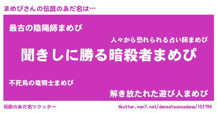 | ヒーロー風カッコイイあだ名 | 『ネオマメピ』『サイバー戦士マメピ』 |