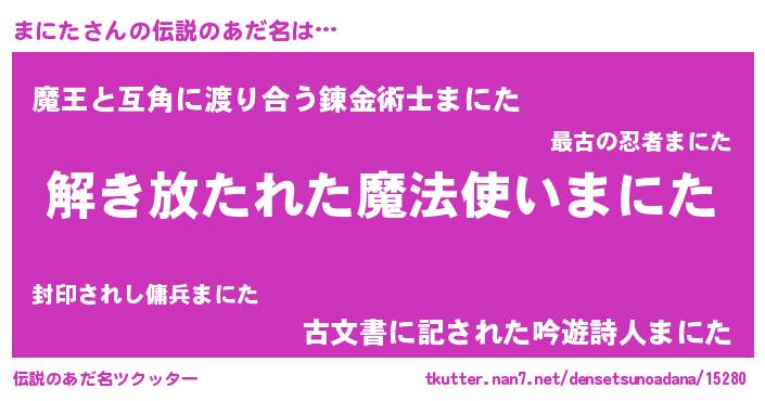 | 意味不明あだ名 | 『とにかく怪しいまにた』『自称まにた』 |