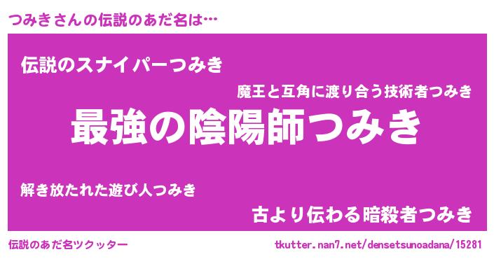 | 女子向けラノベタイトル風あだ名 | 『つみきの婚約者』『つみきの契約王妃』 |