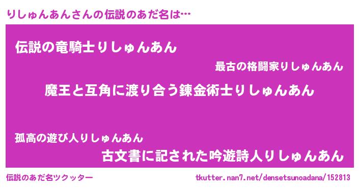 | ヒーロー風カッコイイあだ名 | 『仮面リシダー』『スーパーリシュンアン』 |