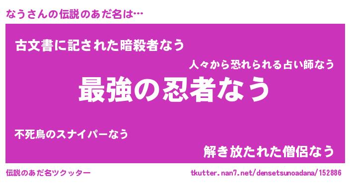 | 意味不明あだ名 | 『住所不定無職なう(47歳)』『永久保存なう』 |