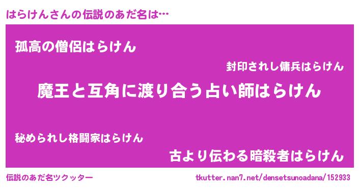 | ヒーロー風カッコイイあだ名 | 『愛の使者はらけん』『魔戒騎士ハラ』 |