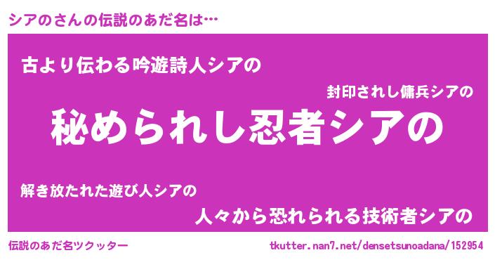 | ヘコむあだ名 | 『つくし』『シアの(笑)』『シアにー』 |