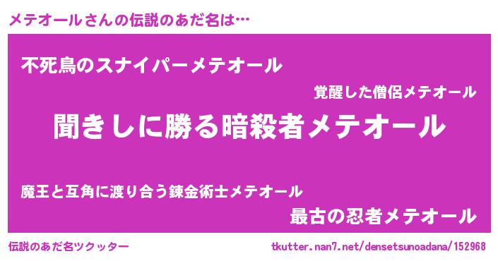 | 意味不明あだ名 | 『永久保存メテオール』『自称メテオール』 |