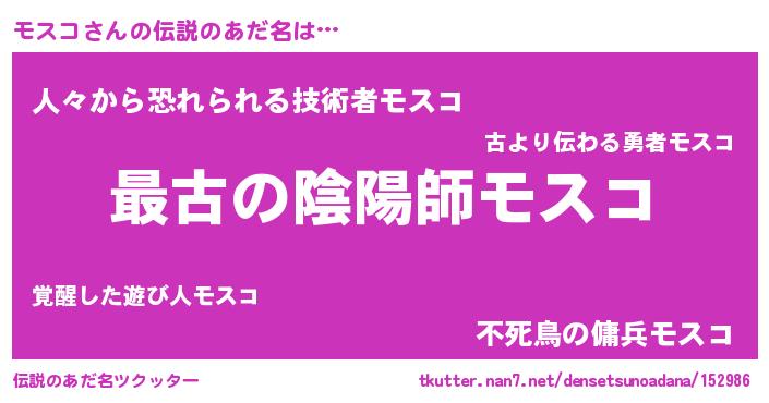 | ファンタジー風あだ名 | 『カークモスラー』『エターナルモスコー』 |