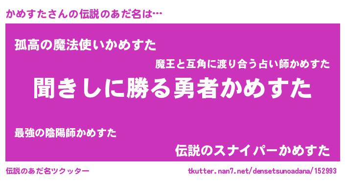 | 男性向けラノベタイトル風あだ名 | 『かめすたという概念が存在しない退屈な世界 』 |