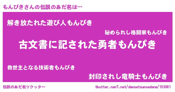 | ヘコむあだ名 | 『もんぴき(遠い目)』『もんっぺ』 |