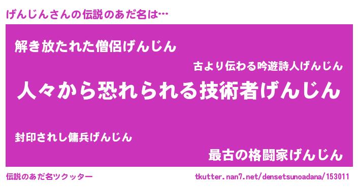 | ヒーロー風カッコイイあだ名 | 『正義の使者げんじん』『仮面ゲンダー』 |