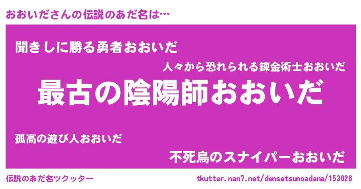 | ヒーロー風カッコイイあだ名 | 『仮面オオダー』『ウルトラおおいだマン』 |