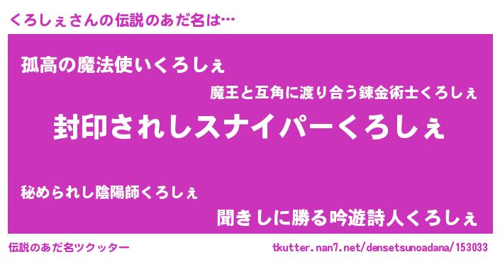 | 意味不明あだ名 | 『自称くろしぇ』『ペロリンくろしぇ』 |