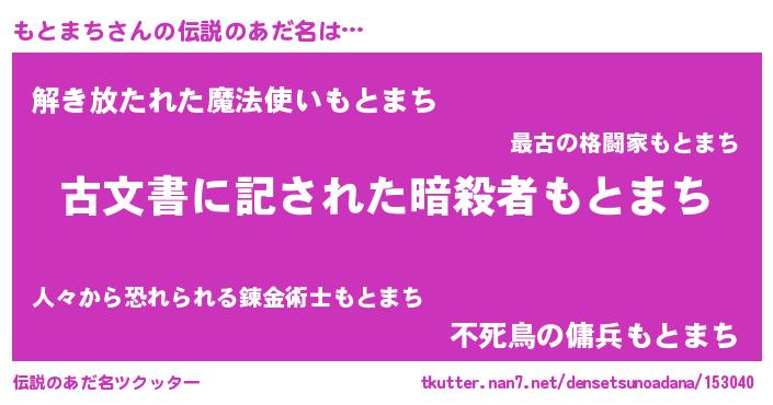 | ファンタジー風あだ名 | 『モトディッシュ』『ファントムモトス』 |
