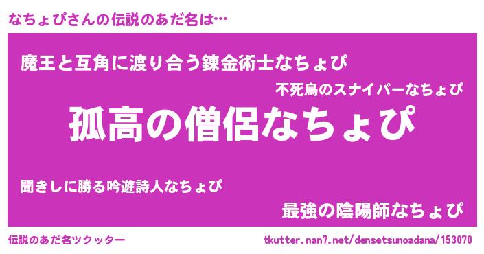 | 女子向けラノベタイトル風あだ名 | 『なちょぴは平凡を望む』 |