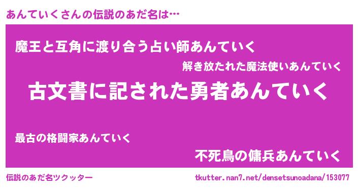 | 意味不明あだ名 | 『自称あんていく』『永久保存あんていく』 |