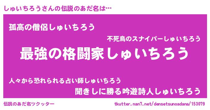 | 男性向けラノベタイトル風あだ名 | 『うちのしゅいちろうが世界を掌握している!』 |