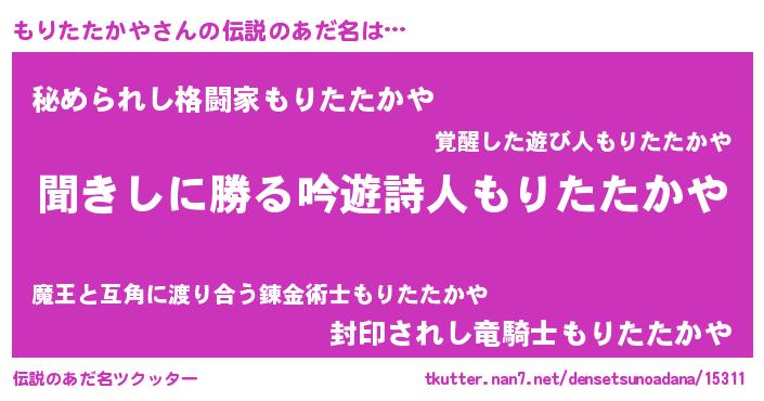 | 意味不明あだ名 | 『永久保存もりたたかや』 |