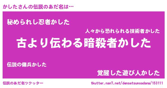 | ヒーロー風カッコイイあだ名 | 『ネオカシタ』『ウルトラ戦士カシタ』 |