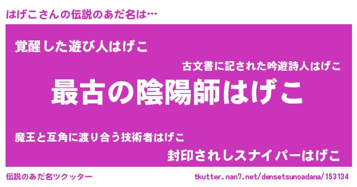 | ファンタジー風あだ名 | 『ゼハゲトゥ』『エターナルハゲコー』 |