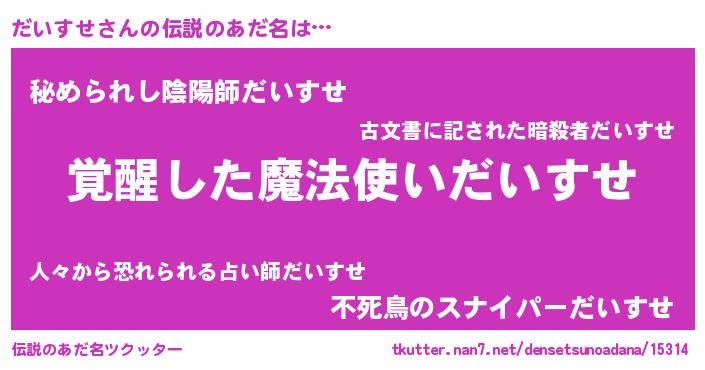 | ヒーロー風カッコイイあだ名 | 『最強戦士ダイスセ』『仮面ダイダー』 |