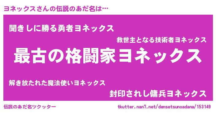 | ファンタジー風あだ名 | 『エターナルヨネックスー』『ヨネフェル』 |