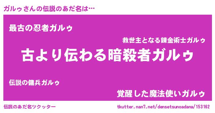 | ヒーロー風カッコイイあだ名 | 『最強戦士ガルゥ』『ネオガルゥ』 |
