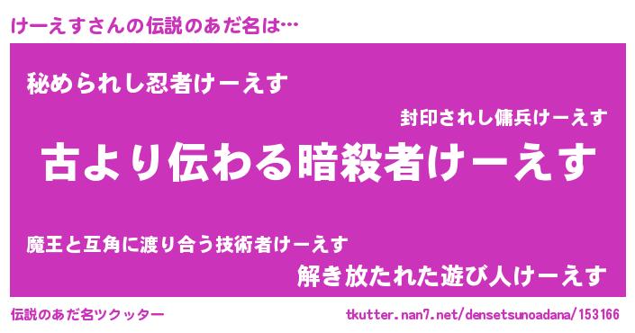 | 意味不明あだ名 | 『住所不定無職けーえす(65歳)』 |