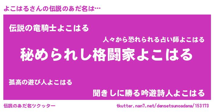 | 意味不明あだ名 | 『よこはるフォーエバー』『自称よこはる』 |