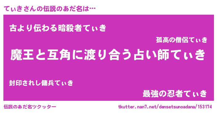 | ヒーロー風カッコイイあだ名 | 『サイバー戦士ティキ』『愛の使者てぃき』 |