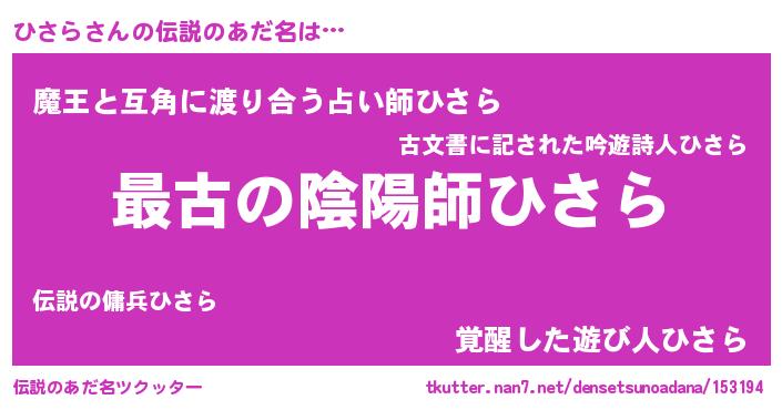 | ヒーロー風カッコイイあだ名 | 『ウルトラひさらマン』『愛の使者ひさら』 |