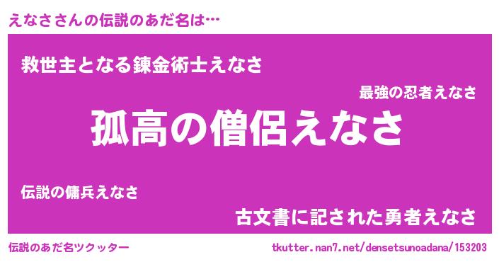 | 意味不明あだ名 | 『とにかく怪しいえなさ』『自称えなさ』 |