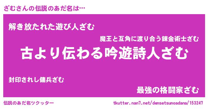 | 意味不明あだ名 | 『永久保存ざむ』『自称ざむ』 |