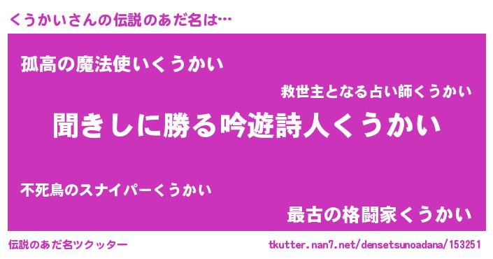 | 意味不明あだ名 | 『自称くうかい』『永久保存くうかい』 |
