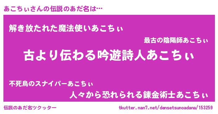| 意味不明あだ名 | 『自称あこちぃ』『永久保存あこちぃ』 |