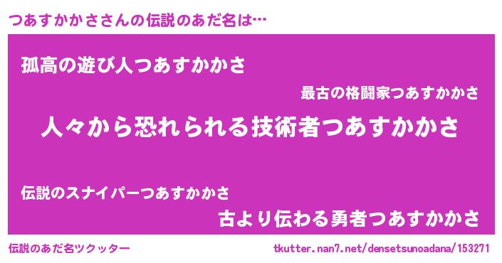 | ヒーロー風カッコイイあだ名 | 『正義の使者つあすかかさ』 |