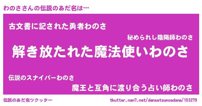 | 女子向けラノベタイトル風あだ名 | 『闇のわのさ』『わのさ様がみてる』 |