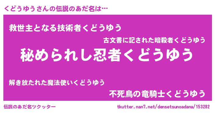 | ヒーロー風カッコイイあだ名 | 『ウルトラくどうゆうマン』 |