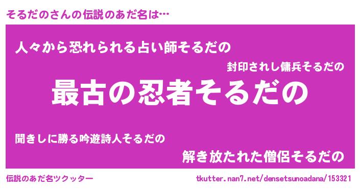 | 意味不明あだ名 | 『そるだのフォーエバー』『自称そるだの』 |