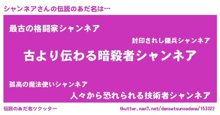 | 意味不明あだ名 | 『住所不定無職シャンネア(59歳)』 |