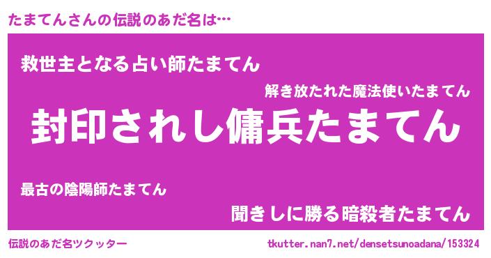 | 男性向けラノベタイトル風あだ名 | 『Re:たまてんから始める異世界生活』 |