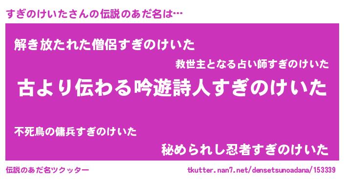 | ヘコむあだ名 | 『すぎのけいた(小並感)』『すぎっ子』 |