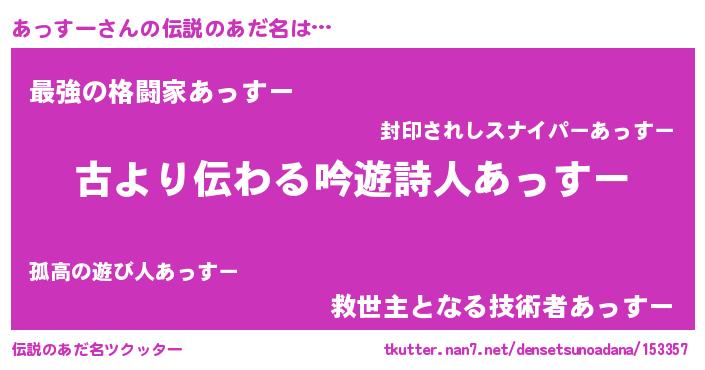 | ヒーロー風カッコイイあだ名 | 『ネオアッスー』『仮面アッダー』 |