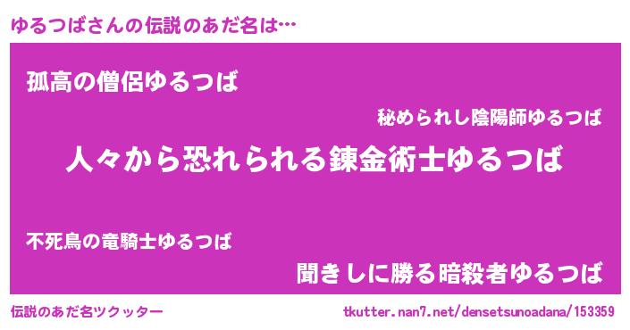 | 男性向けラノベタイトル風あだ名 | 『おまえをオタクにしてやるから、俺をゆるつばにしてくれ! 』 |