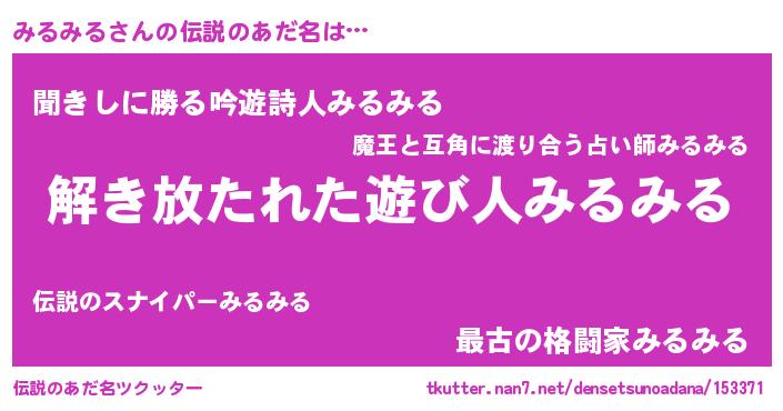 | ヒーロー風カッコイイあだ名 | 『仮面ミルダー』『暗黒騎士ミル』 |
