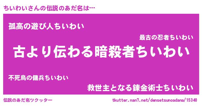 | ヒーロー風カッコイイあだ名 | 『ネオチイワイ』『暗黒騎士チイ』 |