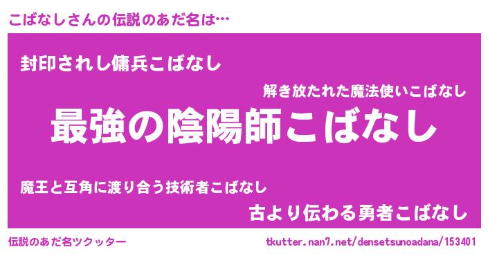 | ヒーロー風カッコイイあだ名 | 『最強戦士コバナシ』『スーパーコバナシ』 |