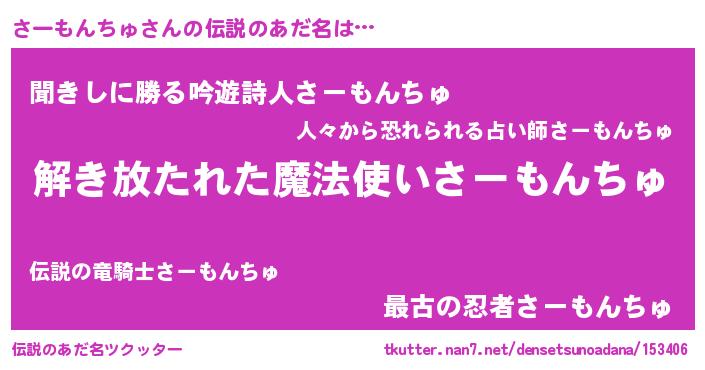 | ヒーロー風カッコイイあだ名 | 『幻影騎士サー』『ネオサーモンチュ』 |