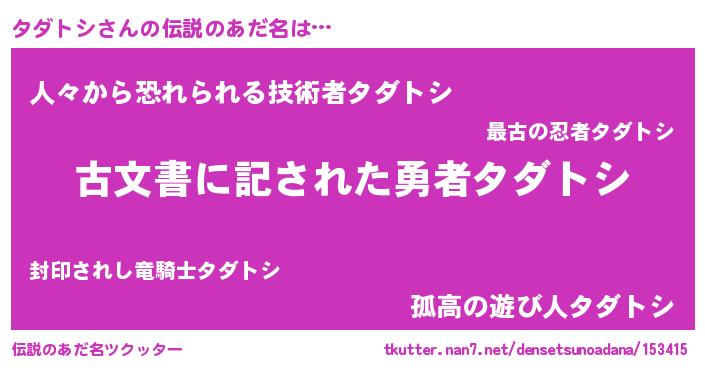 | ヒーロー風カッコイイあだ名 | 『ネオタダトシ』『愛の使者タダトシ』 |