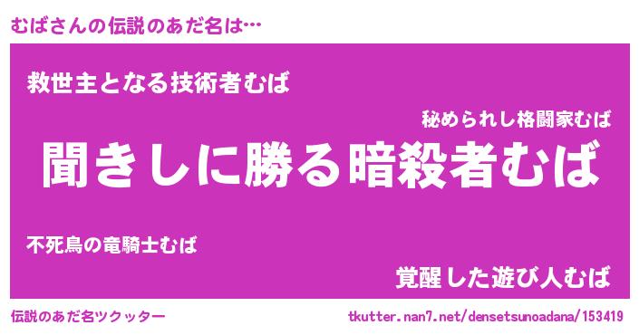 | ヘコむあだ名 | 『むば(苦笑)』『むばを』『酢こんぶ』 |