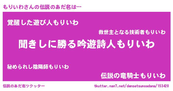 | 男性向けラノベタイトル風あだ名 | 『もりいわという概念が存在しない退屈な世界 』 |