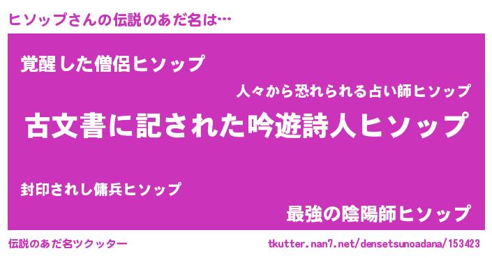 | ヘコむあだ名 | 『ヒソップ(笑)』『ヒソぷりん』 |
