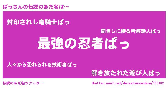 | ヒーロー風カッコイイあだ名 | 『ウルトラぱっマン』『スーパーパッ』 |